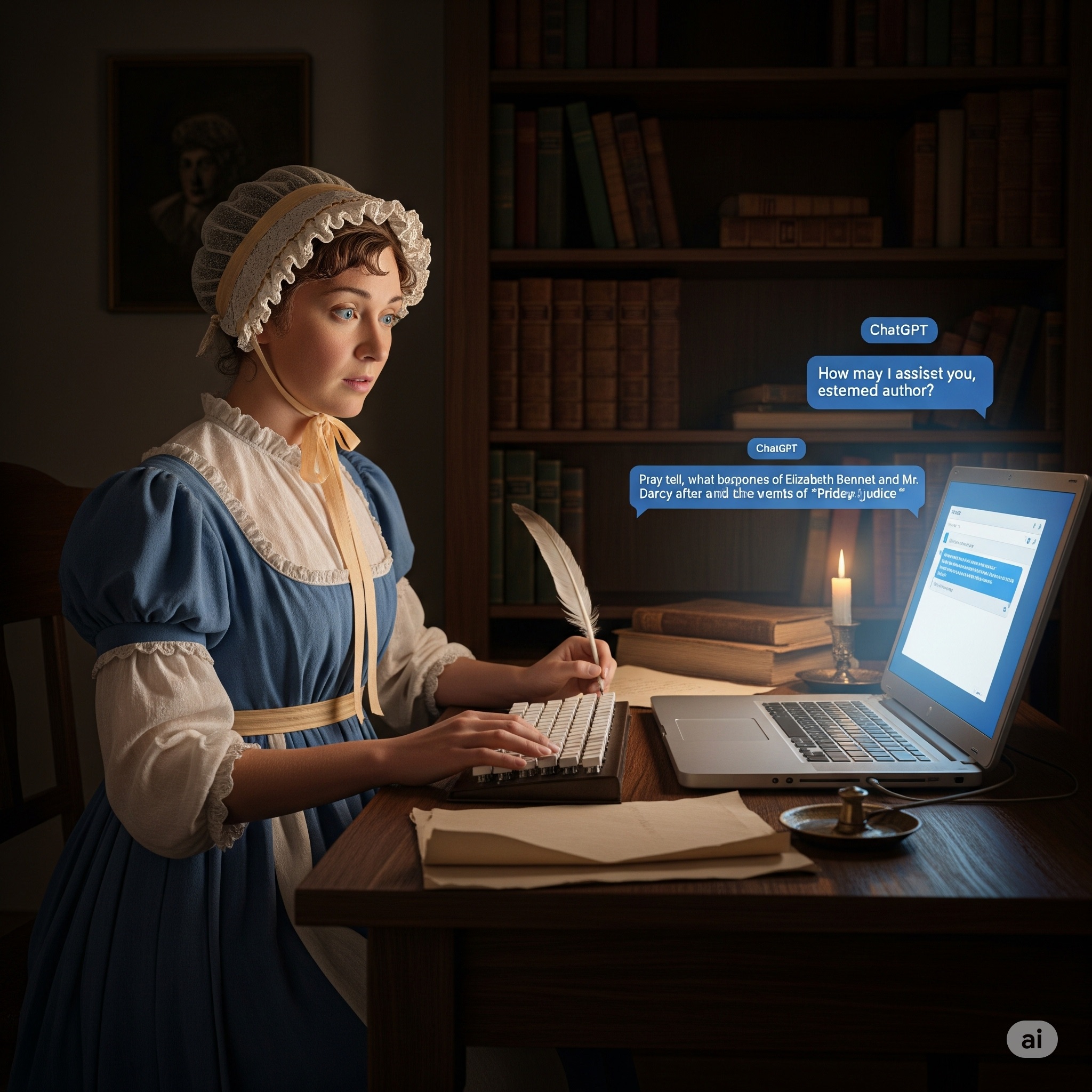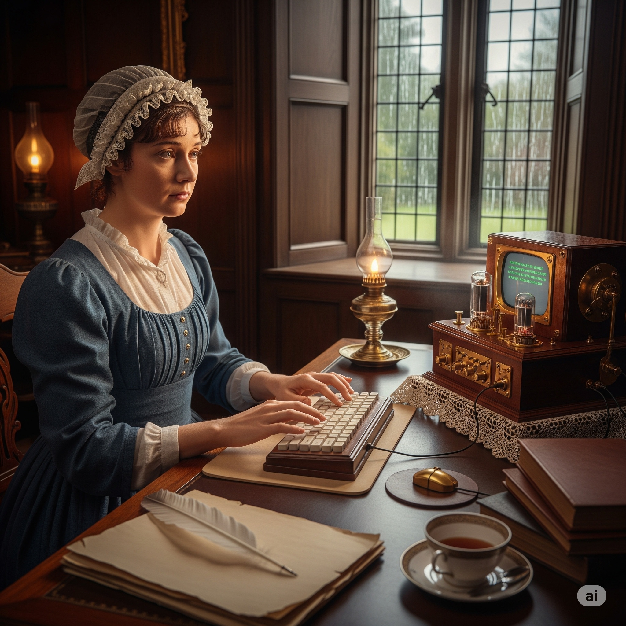 Jane Austen Using a Computer. Gemini 6 Aug. 2025.