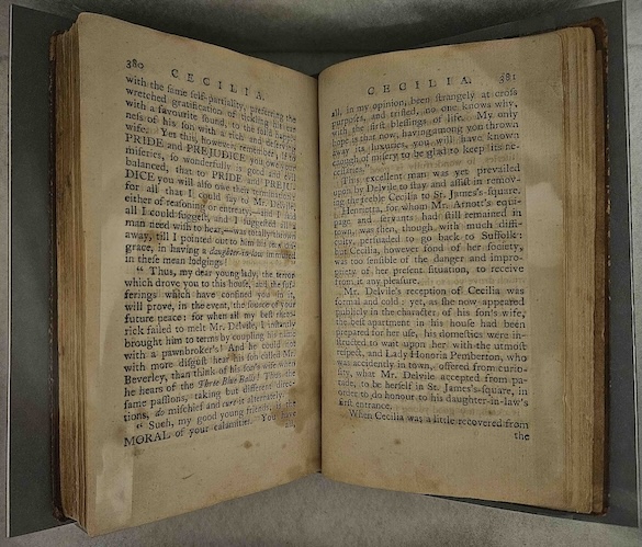 Cecilia, or Memoirs of an Heiress, by Frances Burney (London: T. Payne & T. Cadell, 1782). Chawton House, Acc. No. 142. (Click here to see a larger version.)