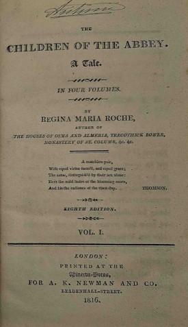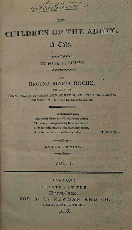 The Children of the Abbey, by Regina Maria Roche (London: Minerva Press, 1816). Chawton House, Acc. No. 5009.