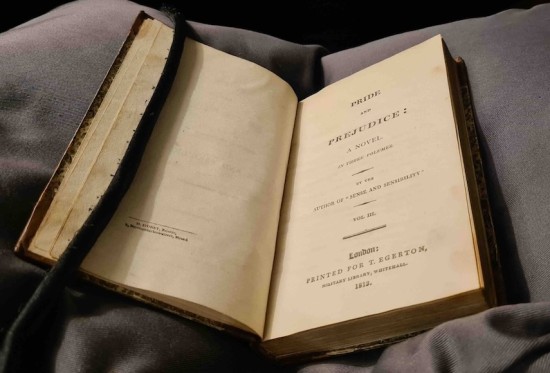 Pride and Prejudice, by Jane Austen (1st ed. London: T. Egerton, 1813). On loan from a private collector. (Click here to see a larger version.)