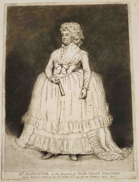 Mr Bannister in the Character of Miss Polly Peachum (1781). Chawton House, Deirdre Le Faye Archive DLF/P/003.(Click here to see a larger version.)