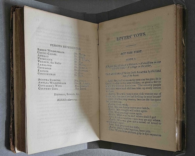 Lovers’ Vows, by Elizabeth Inchbald, in The British Theatre, Vol. 23, edited by Elizabeth Inchbald (London: Longman et al., 1808). On loan from a private collector. |