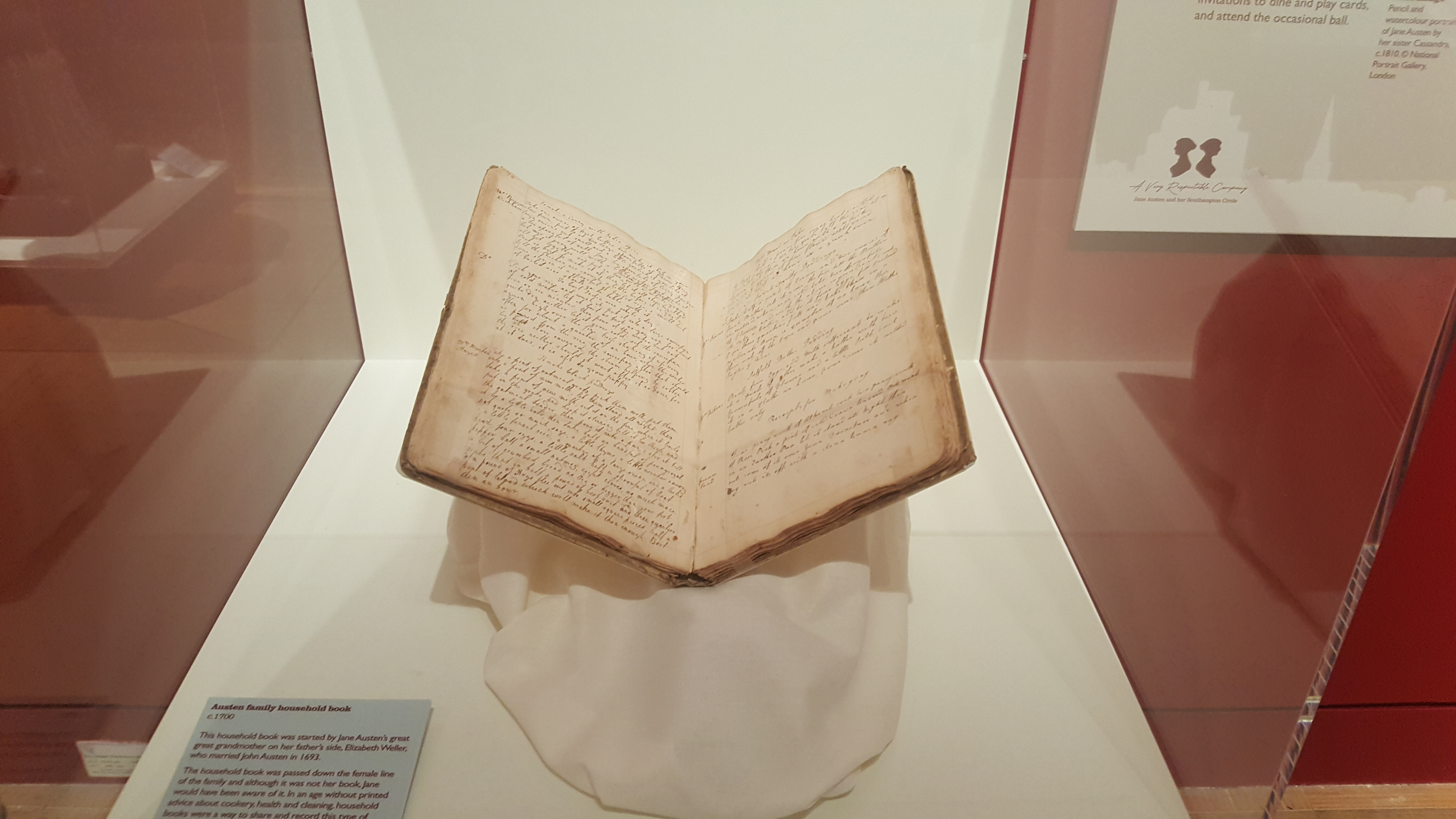 On their marriage, Elizabeth and John moved into the newly built property in the parish of St. Mary’s. Elizabeth bought one very useful item with her, inherited from Elizabeth Weller, the great-grandmother she and Jane Austen shared: a household book. The book is full of handwritten recipes and useful household hints, many donated by members of the wider Austen family. Most of the entries in the first half of the book naturally date from Elizabeth Weller’s time. The book descended via the female line to Elizabeth Butler Harrison, and during her ownership she added the next largest number of recipes. This household book is similar to the one that Martha Lloyd compiled, but this collection of recipes includes the names of those who donated them.