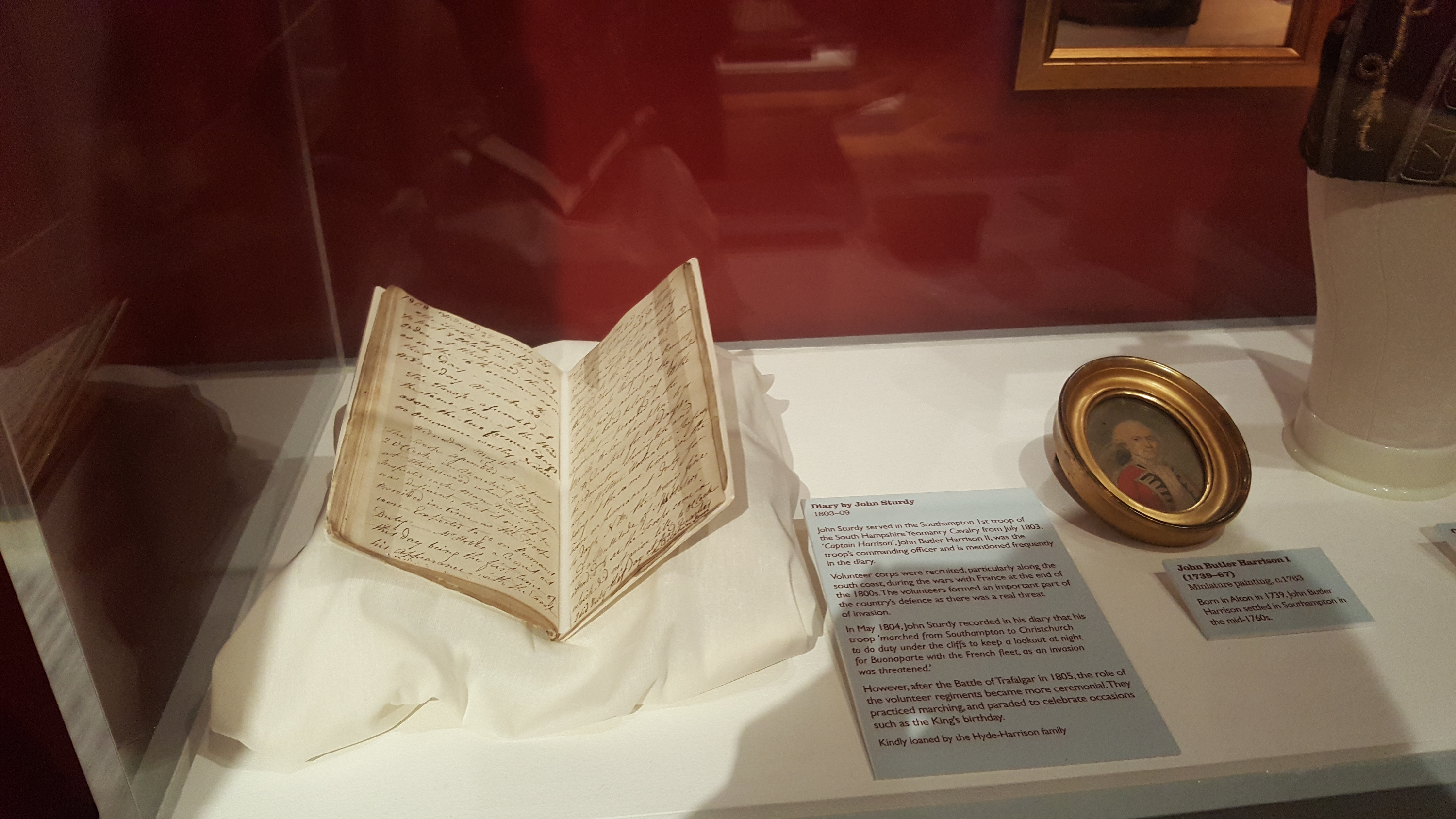 Serving with Butler Harrison in the years 1803–09 was local auctioneer John Sturdy. He also lived near the Austens in a property a few minutes’ walk away, on St. Michael’s Square. Sturdy kept a journal of the Loyal Volunteers’ activities, and when he left the service in 1809, he donated the journal to his captain, John Butler Harrison II.