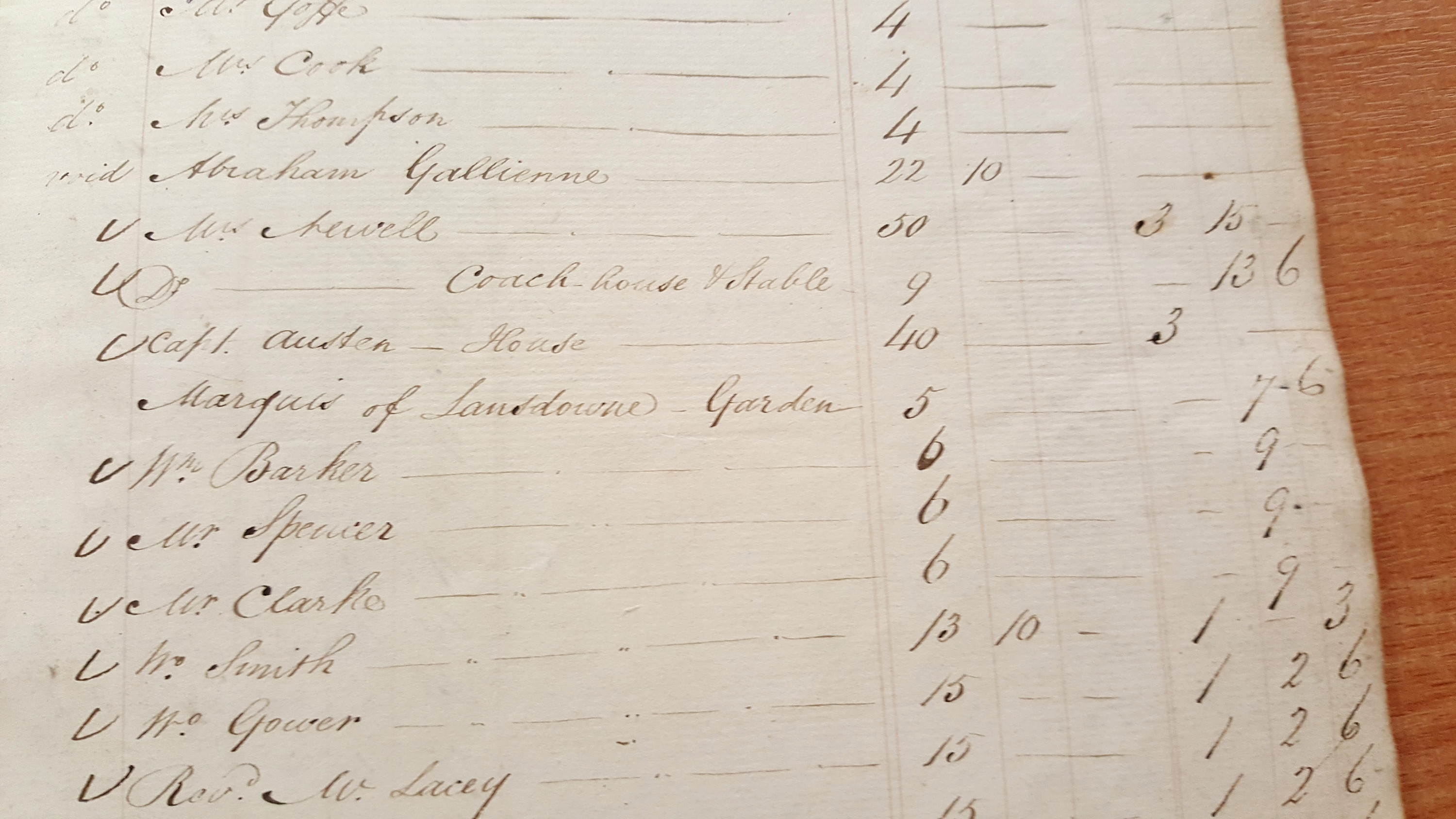 Ratebook showing entry for Francis Austen’s property. Southampton Archives SC AG8 6, Rate Book 1806–1808 All Saints. (Click here to see a larger version.)