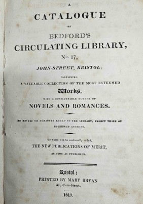 A Catalogue of Bedford’s Circulating Library (Bristol: Mary Bryan, 1817). Chawton House, Acc. No. 1623. |