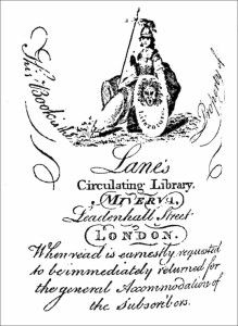 Several publishers owned circulating libraries. Established in 1774 and housed on Leadenhall Street in London, William Lane’s Circulating Library was one of the largest, with over 20,000 books. From 1790, Lane—responsible for publishing over a third of new London novels over the next thirty years—used his publishing house, Minerva Press, to supply his library’s stock. Six of the seven “‘horrid’” novels mentioned by Austen in Northanger Abbey were Minerva Press publications. Many Minerva novels were also reprinted in America.