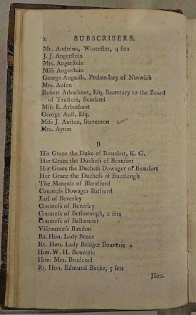 In Sanditon, even the sensible Charlotte Heywood can be affected by the fictions of the circulating library. “Perhaps it might be partly owing to her having just issued from a circulating library—but [Charlotte] could not separate the idea of a complete heroine from Clara Brereton. Her situation with Lady Denham so very much in favour of it!—She seemed placed with her on purpose to be ill-used” (LM 169). The catalogue from Bedford’s Circulating Library gives a sense of the wide range of novels available to readers, alongside other goods, from hair powder and playing cards to lemon pickle. A twelve-month subscription to Bedford’s Circulating Library would cost one guinea (£1.1s). Alongside a host of intriguing titles, most now entirely forgotten, Austen’s novels Sense and Sensibility, Pride and Prejudice, and Emma are included (but not Mansfield Park).1