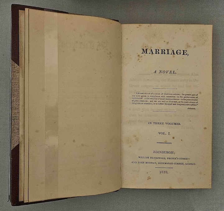 Marriage, by Susan Ferrier (London: William Blackwood & John Murray, 1818). Chawton House, Acc. No. 7797. |