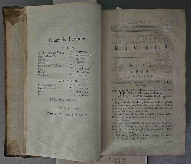 The Rivals, by Richard Brinsley Sheridan (London: John Wilkie, 1775). Chawton House, Acc. No. 6115. (Click here to see a larger version.)
