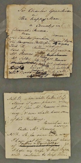 This reduction of Richardson’s seven-volume novel to a five-act play is the only literary manuscript in Jane Austen’s hand that remains entirely unchanged from when it was first written, still containing the pins (most likely Austen’s dress pins) used to hold it together. It is clearly a working document created to aid performance, and it contains deletions and revisions. Rather than Jane Austen’s polished genius, we see here messy drafting, improvisation, and collaboration.