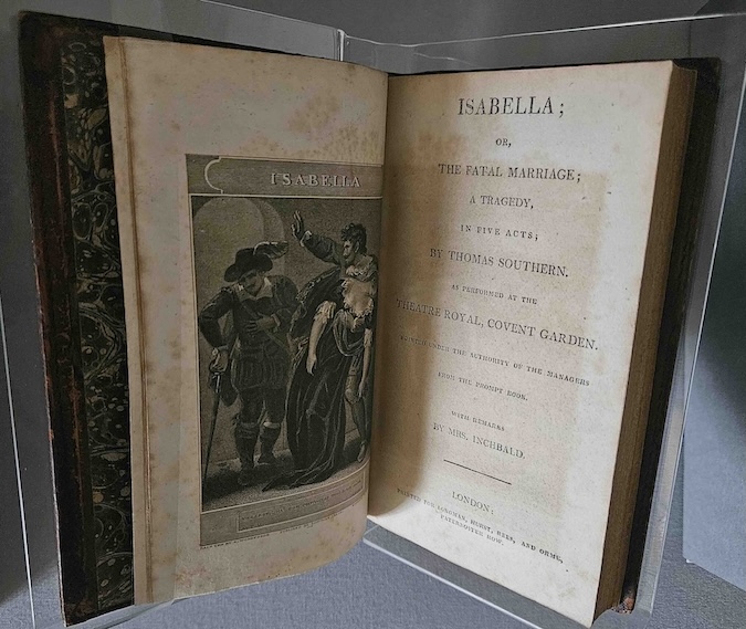 The tragedy Isabella; or, the Fatal Marriage, revived by David Garrick from an earlier play, Thomas Southerne’s The Fatal Marriage; or The Innocent Adultery (1694), was likely the last play Jane Austen saw on the stage. Isabella marries again after her husband dies in war, only to discover that her first husband is still alive.