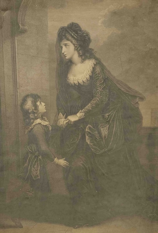 Miss Siddons and her Son in the Tragedy of Isabella (1785), by J. Caldwell, after William Hamilton. Reproduced from the Deirdre Le Faye Archive. |