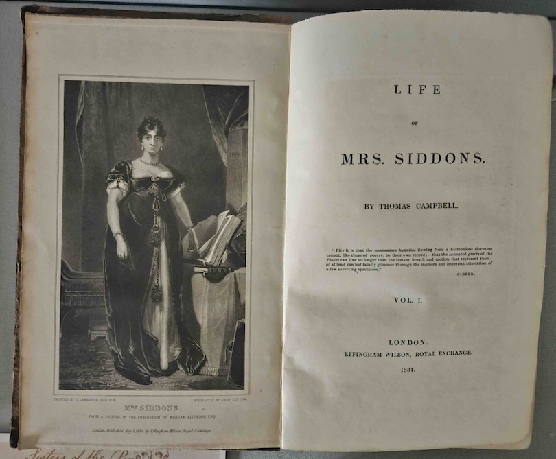 Life of Mrs. Siddons, by Thomas Campbell (London: Effingham Wilson, 1834). Chawton House, Acc. No. 6644. |