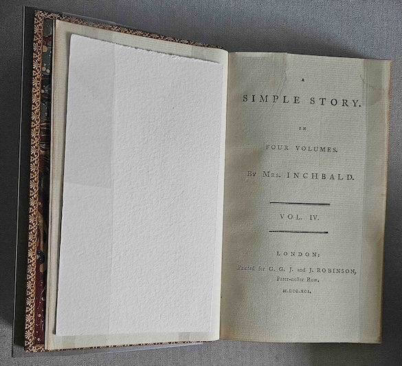 A Simple Story, by Elizabeth Inchbald (London: G. G. & J. Robinson, 1791). Chawton House, Acc. No. 385. |